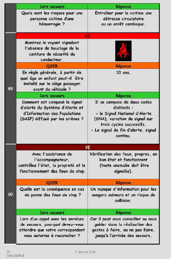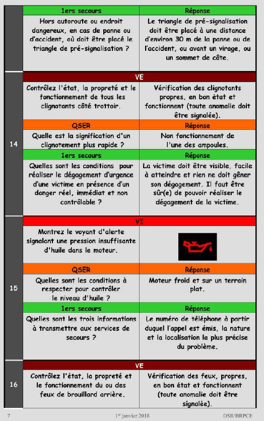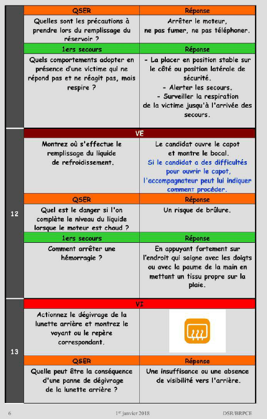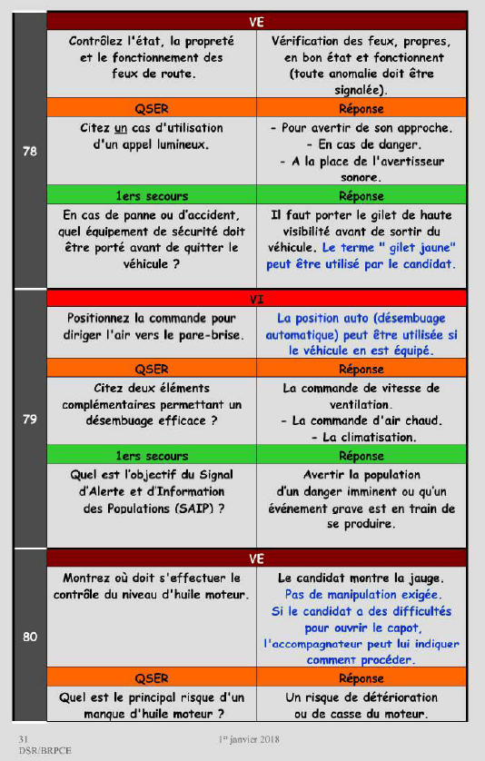 Pour déterminer la question qui sera posée au candidat lors de l’épreuve pratique, l’expert prend les 2 derniers chiffres du compteur kilométrique total de la voiture. Par exemple, si le kilométrage de la voiture est de 32547 km, le candidat sera interrogé sur la question 47. Chaque bonne réponse rapporte 1 point.